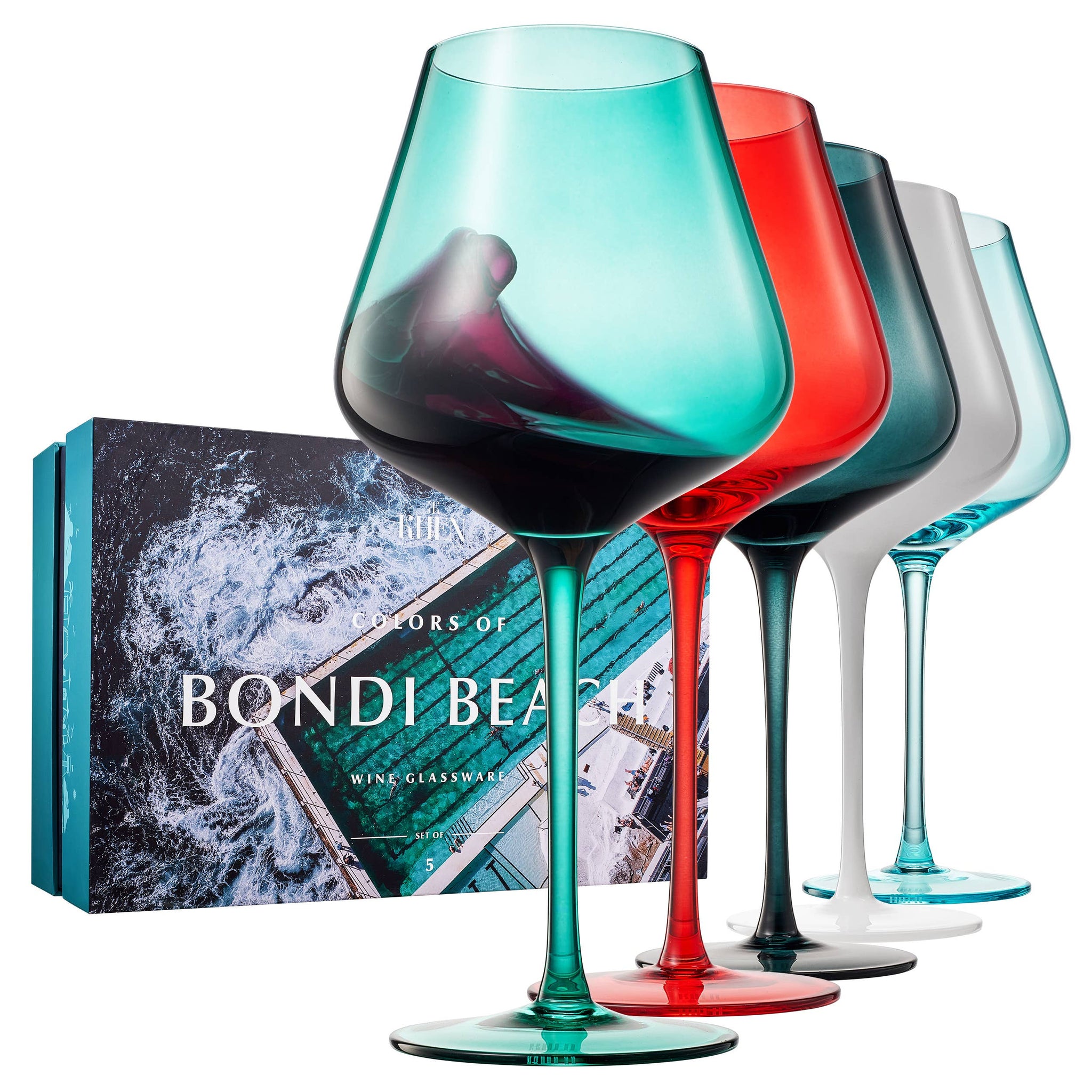Introducing the City of Bondi Beach wine glasses, a set of five beautifully designed glasses that capture the vibrant colors of this iconic Australian beach city. Ideal for residents, travelers, or city explorers, these glasses bring the essence of Bondi Beach into your home. Each glass is large-stemmed and holds 20 ounces of your favorite red or white wine, making them perfect for any occasion.